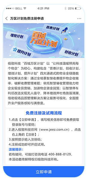 欢迎免费注册试用普惠计划,注册地址: http://wqjh.jeez.cn:8712/jan/#/cloudRegister