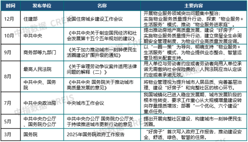 2025年,物业管理行业在国家治理体系中的战略地位进一步凸显。“十四五”规划建议与全国住房城乡建设工作会议均明确提出“实施物业服务质量提升行动”,为行业高质量发展定调。年内,行业热点问题受到人民日报等中央媒体高频关注,体现了其与民生福祉的深度关联。然而,从全国层面看,政策在方向指引与落地精度上仍存落差,物企权责、收费机制等核心环节的系统性法规尚待完善,企业需保持战略定力,在探索中前行。