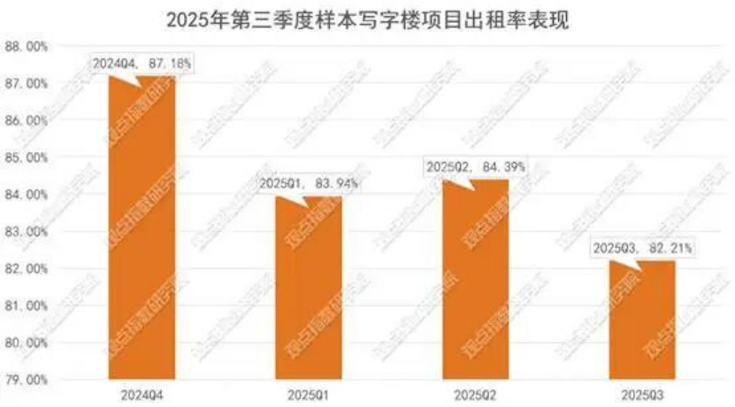 2025年三季度,全国主要城市甲级办公楼租金延续调整态势,9月样本出租率均值降至82.21%