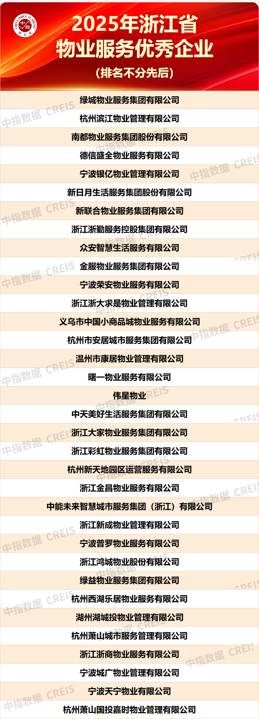 2025年浙江省物业服务优秀企业榜单发布