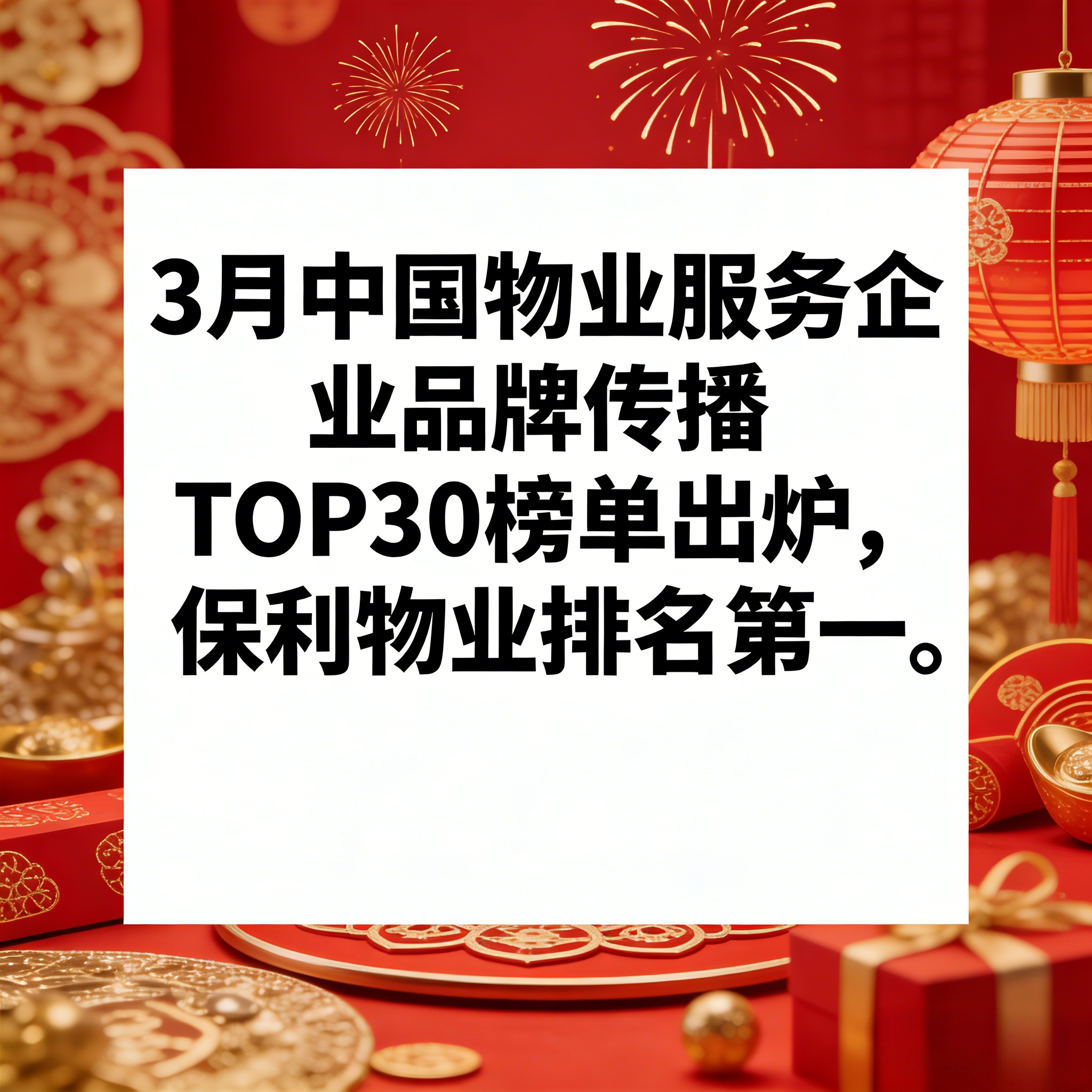 3月中国物业服务企业品牌传播TOP30榜单出炉,保利物业排名第一