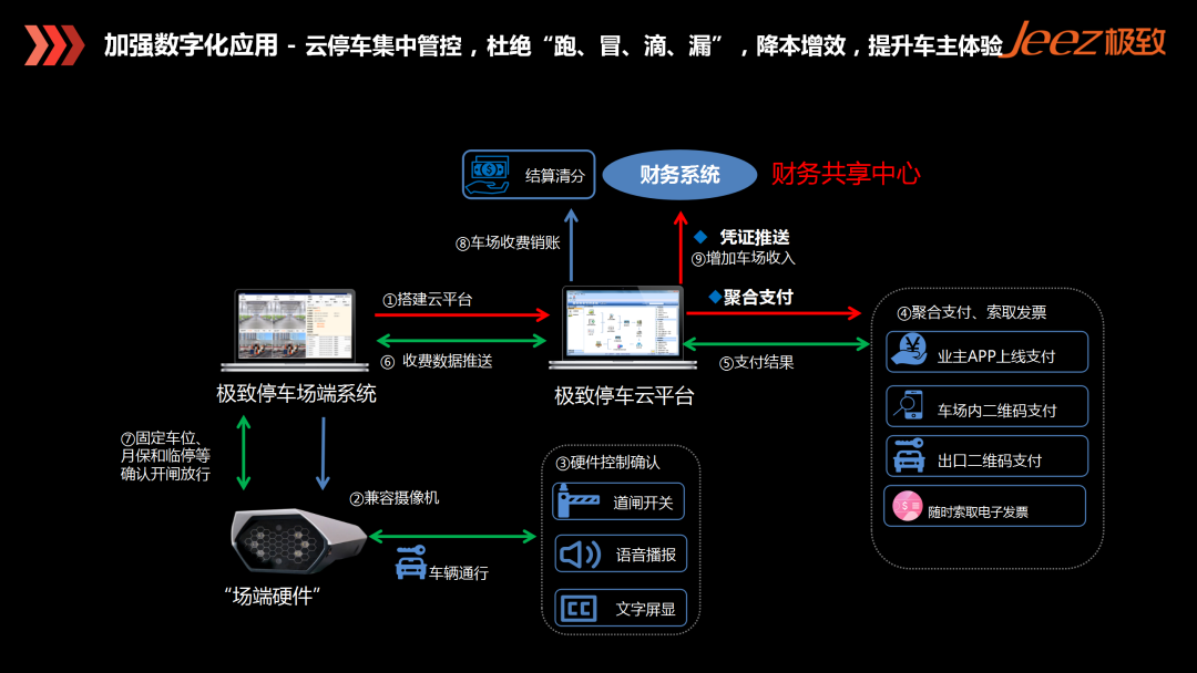 为能解决这些问题,极致科技提出利旧改造的极致云停车集中管控方式,降低集中化管理的成本投入,并有效堵住停车场的“跑、冒、滴、漏”,提升车场的进出效率、提升车主体验。